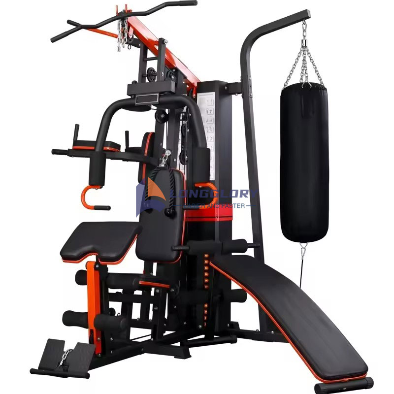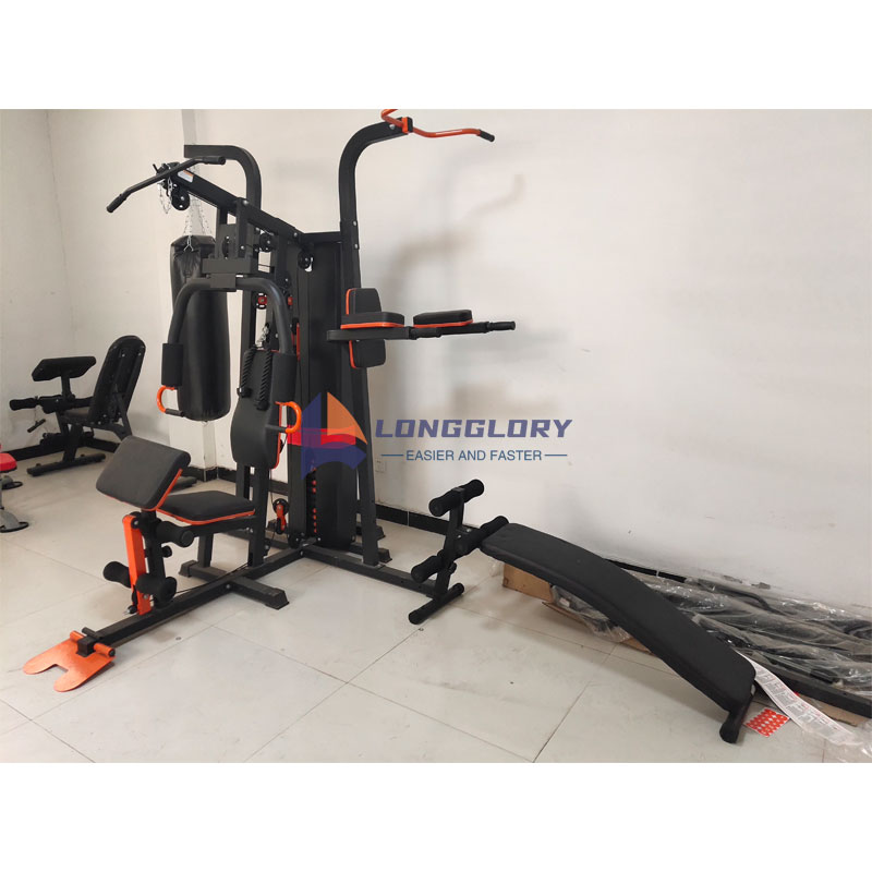 LongGlory Multi Station Gym Equipment တွင် gym bench ပါ၀င်သော ကြိုးဆွဲကိရိယာများ၊ ထိုင်ထခုံများ၊ ဆိုင်းငံ့ထားသော ခုံတန်းလျားများ စသည်တို့အပါအဝင် လေ့ကျင့်ရေးစခန်းများစွာ ပါရှိပြီး lat pulldown၊ pull-ups၊ biceps လေ့ကျင့်မှု၊ တင်ပါးဆုံရိုး၊ ရေနှစ်ခြင်း၊ ခြေထောက်ကို ဆန့်ထုတ်ခြင်းနှင့် ကွေးခြင်း၊ ရင်ဘတ်ဖိခြင်း စသည်တို့သည် ခန္ဓာကိုယ်၏ အစိတ်အပိုင်းအားလုံးကို အပြည့်အဝ လေ့ကျင့်ခန်းလုပ်ရန် ကူညီပေးပါသည်။